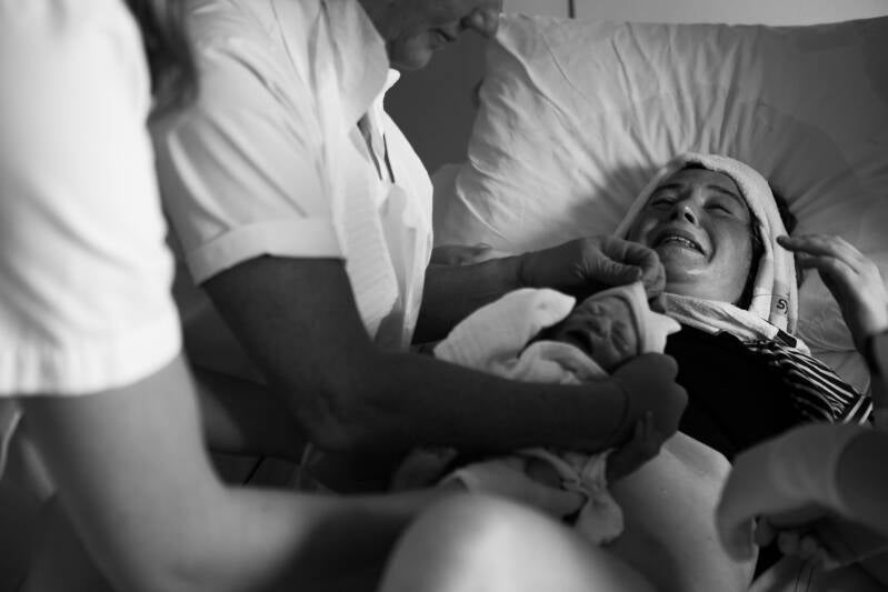 Mijn vliezen zijn gebroken, de weeënopwekkers deden hun werk en ik gaf mijn moeder een spoedcursus fotograferen met een spiegelreflexcamera....